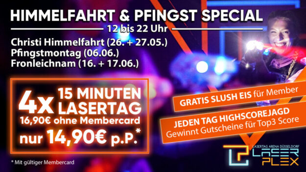 𝟒 𝐱 15 Minuten 𝐋𝐚𝐬𝐞𝐫𝐓𝐚𝐠 𝐧𝐮𝐫 𝟏𝟒,𝟗𝟎 €* Christi Himmelfahrt – Do. 26. + Fr. 27.5. Pfingstmontag – Mo. 6.6. Fronleichnam – Do. 16. + Fr. 17.6. Jede Woche #HIGHSCOREJAGD** Die 𝐖𝐨𝐜𝐡𝐞𝐧 𝐓𝐨𝐩-𝟑 𝐠𝐞𝐰𝐢𝐧𝐧𝐞𝐧 𝐭𝐨𝐥𝐥𝐞 𝐏𝐫𝐞𝐢𝐬𝐞:𝟏. 𝐏𝐥𝐚𝐭𝐳 – 30 € LASERPLEX Wertgutschein𝟐. 𝐏𝐥𝐚𝐭𝐳 – 20 € LASERPLEX Wertgutschein𝟑. 𝐏𝐥𝐚𝐭𝐳 – 10 € LASERPLEX Wertgutschein 𝐓𝐨𝐩-𝟏𝟎𝟎…