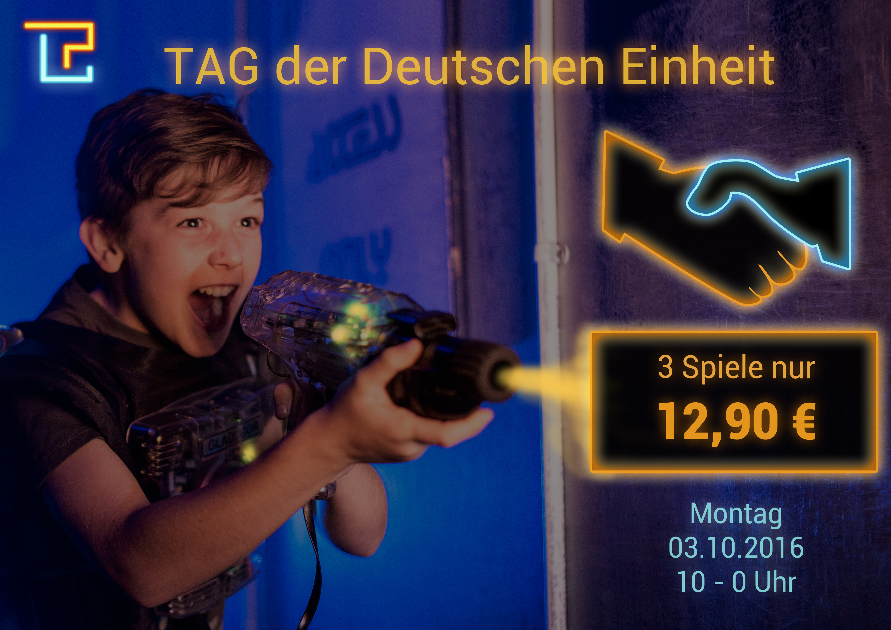 # Schockierend günstig Taggen: 4 Spiele für nur 14,90 € # Jedes 2. Spiel einer von 4 actiongeladenen Spielmodi (Dead Aim, Zombie, Shadows, Gefängnisausbruch) # Schaurig schöne Halloweendeko in unserer Lounge # Kommt kostümiert = bekommt ein Freigetränk # Hole dir das Achievement „Geisterjäger“ mit einer Mission an Halloween # Hole dir das Achievement „Trick…